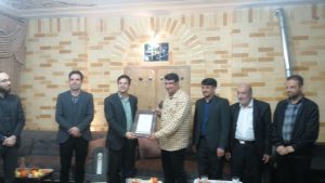تشکر فرماندار شهرستان آقای رضا علی معصومی خلجی از آقای وحیدی فر مسئول گروه سرود رهپویان حرم شهرستان برخوار